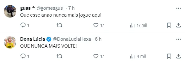 No Twitter, houve vários comentários como: “Que nunca mais volte”, “depois do empréstimo não precisa voltar”, “Que o Grêmio arque com essa bomba relógio”, “não pode voltar a vestir branco em Santos” e “ingrato demais!
