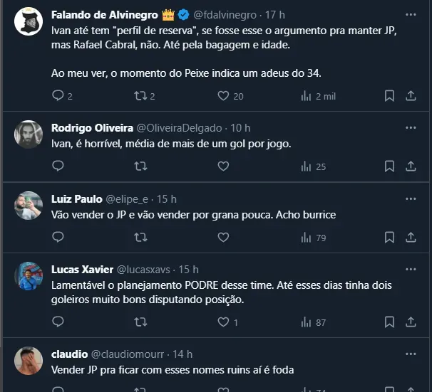 Vale frisar que Ivan pertence ao Corinthians e esteve emprestado ao Vasco na última temporada, mas ficou no banco de Léo Jardim. Como João Paulo interessa a Grêmio e Corinthians, uma “troca” por Ivan seria facilitada, juntamente com uma compensação financeira. No entanto, a torcida não curtiu a ideia.