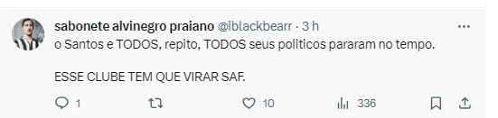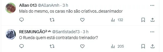 Quem não gostou nada de saber disso foram os torcedores do Santos. Pelo Twitter, houve quem se revoltou, achando que é um retrocesso, mesmo com a queda do Clube Paulista para a Segundona do Campeonato Brasileiro.
