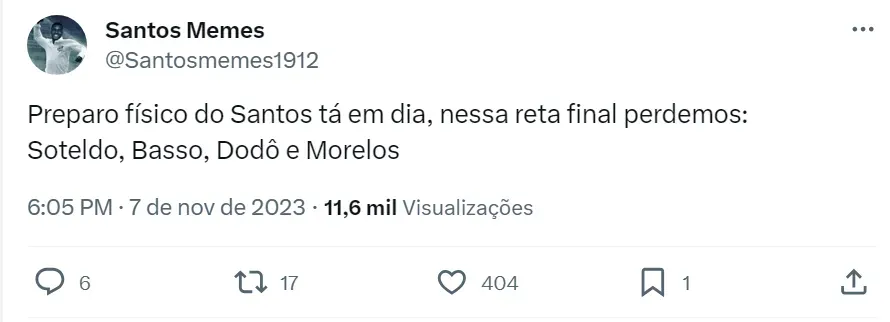 Nesta reta final de campeonato, o Santos vem sofrendo com desfalques e não vai contar com o lateral-esquerdo Dodô e o atacante Yeferson Soteldo. O camisa 10 do Peixe tem um edema no posterior da coxa esquerda.