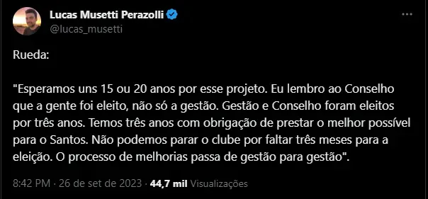 Isto é, em caso de vitória sobre o Vasco no próximo dia 1 de outubro, a tendência é que Marcelo Fernandes seja efetivado e comande o time até o fim do ano. Já em caso de resultado negativo, o Peixe deve ir atrás de um novo treinador. Vale frisar que, por mais que o momento seja delicado, a balança está pesando para os dois lados para “retardar” a decisão oficial do mandatário.