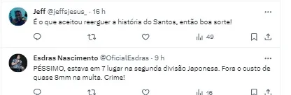 “Sabemos das dificuldades que o Santos está tendo nos últimos anos, mas estamos sendo muito otimistas. Vamos trabalhar para brigar por coisas grandes. Chega de sufoco, de coisa pequena”, disse.