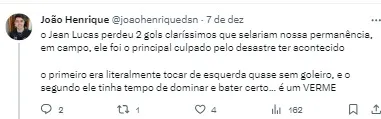 Diante da temporada catastrófica, Jean Lucas foi um dos mais afetados pelo péssimo futebol do Santos. O jogador que retornou com status de ‘salvador’ do time, acabou tendo em si um péssimo reflexo do ano.