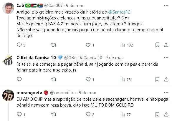 Esses números tornaram o goleiro alvo de críticas por parte de alguns torcedores nas redes sociais, especialmente após a chegada de Gabriel Brazão, que se apresentou como um especialista em defesas de pênaltis.