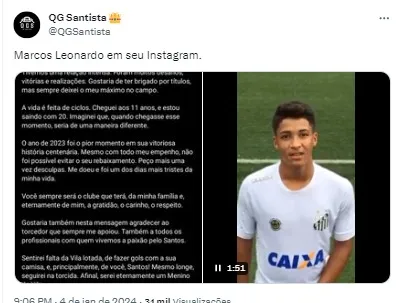 O Santos de forma oficial se despediu de Marcos Leonardo. O Menino da Vila agora é jogador do Benfica, de Portugal, e foi anunciado nesta quinta-feira (4). O jogador de fato é um dos grandes destaques do Peixe, mas se despede com um ar ‘pesado’.