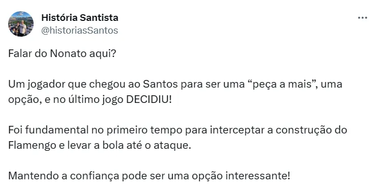Nonato chegou ao Peixe em julho, emprestado pelo Ludogorets, da Bulgária, mas não vinha fazendo boas apresentações. Em contrapartida, vem demonstrando evolução e mostrando que pode ser importante.