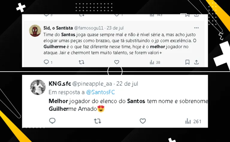 Em alta no Santos, Guilherme está perto de alcançar os números dele no ano passado, quando ainda atuava pelo Fortaleza. Ele marcou 10 gols e deu seis assistências em 52 partidas. Com metade dos jogos disputados pelo Peixe, o atacante está a três gols e a uma assistência de igualar a marca.