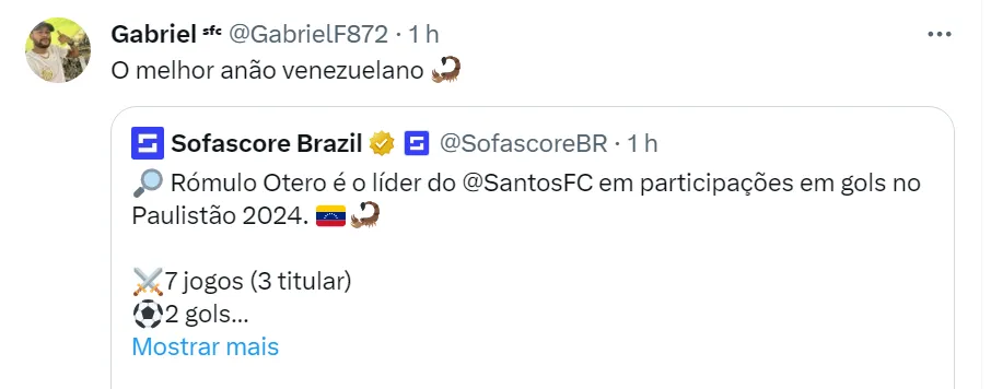 De acordo com o Sofascore, o meia venezuelano em seu começo pelo Peixe soma 12 passes decisivos, 3 grandes chances criadas e 44% de acerto nos cruzamentos. A sua importância cresceu ainda mais após a lesão do meia Giuliano.