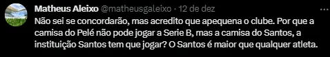 Santos precisa de um novo grande ídolo para ascender novamente? Não me parece prático. Os Ídolos vão embora para outro time, envelhecem, falecem. Um clube não pode sustentar sua potência em jogadores únicos. Se o Santos quiser voltar para a Série A, vai precisar muito mais do que se apoiar em grandes nomes. O Peixe precisa de uma reformulação de ideais.