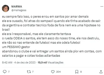Rueda entrou, conseguiu apartar um pouco as dívidas, porém, não dá para negar que mesmo diante desse cenário, o mandatário focou só no adminsitrativo, que é importante para o Clube, mas esqueceu do futebol, foram erros consecutivos que fez com que o Clube chegasse onde chegou. Agora, quem sente é a torcida, mas o fato é que a situação estava alarmante e nada foi feito e um dos maiores Clubes do futebol brasileiro amarga na Série B.