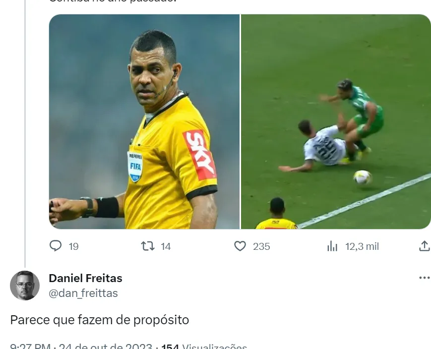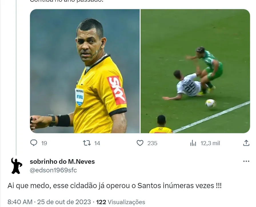Após a notícia que Wagner Nascimento vai apitar Santos e Coritiba, os torcedores do Peixe criticaram muito a CBF por essa decisão e afirmaram nas redes sociais que a entidade nacional quer prejudicar o Alvinegro Praiano. Muitos santistas afirmaram que Wagner Nascimento já prejudicou o time santista em outras situações e temem que isso possa voltar a acontecer na quinta-feira (26).