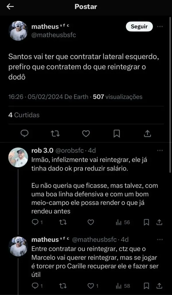 Com essa atualização sobre Jorge, a torcida santista se preocupa com o futuro do time, em relação a lateral esquerda. Com isso, nas redes sociais, a notícia caiu como uma bomba.