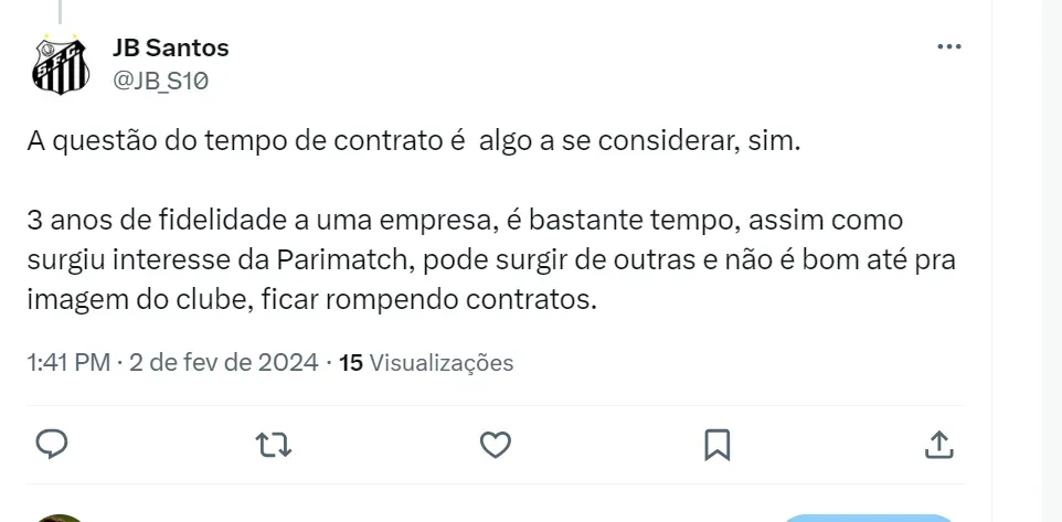 Na última quinta (1), o setorista Filipe Dias informou que a PariMatch, empresa on-line de apostas, teria uma reunião com a gestão Marcelo Teixeira na Vila Belmiro nesta sexta.