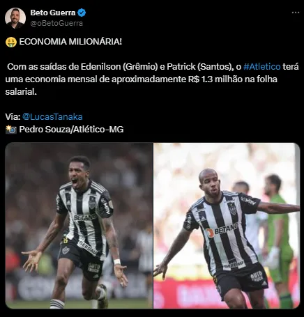 Em pouco mais de um ano com a camisa do Atlético-MG, Patrick também não conseguiu garantir segurança. Diante disso, ficou longe de ser um dos titulares da equipe.
