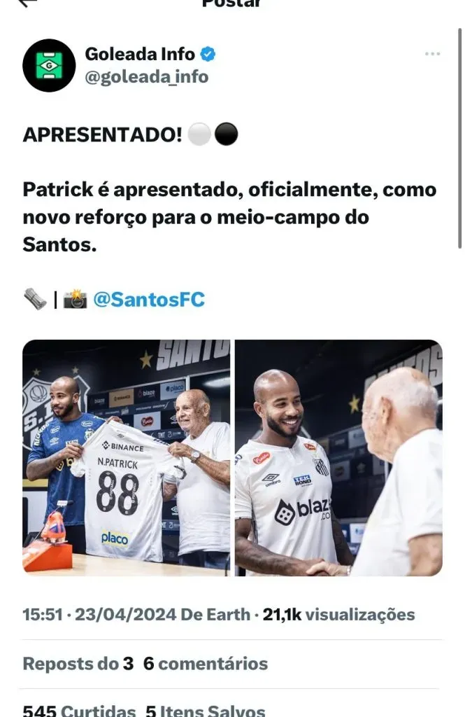 O time que passou por uma reformulação, anunciou recentemente a compra de Patrick, que estava no Atlético Mineiro. O jogador foi apresentado essa semana a revelou no que pode ajudar na disputa em busca do retorno à Série A e como ele se sente vestindo a camisa do Peixe: