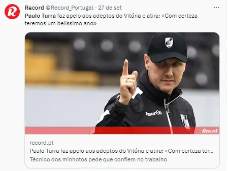 De acordo com números levantados pelo portal Transfermarkt, Turra está no comando do time português há cinco jogos. Porém, desde que chegou lá, só teve uma vitória. No comando do Vitória de Guimarães, o treinador tem, além desse resultado positivo, um empate e três derrotas. Mesmo com esse começo ruim, segundo publicação do site O Jogo, ele pediu a confiança em seu trabalho.
