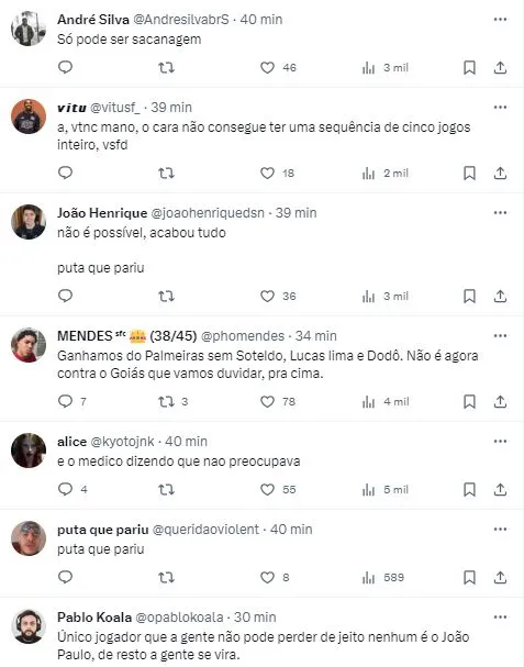“No intervalo ele fez uma massagem grande no adutor e disse que iria voltar. Tiramos ele por precaução, pois temos mais seis jogos. Mas nada de mais, já falei com o Soteldo. É bom, pois ele quer jogar, não é uma insatisfação”, afirmou Fernandes, antes do problema vir à tona.