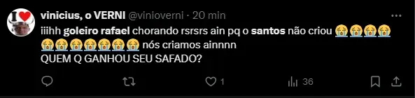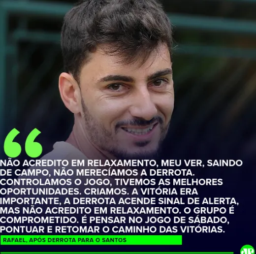 De acordo com o arqueiro do rival, o Santos não mereceu a vitória, já que os comandados de Carille não tiveram uma finalização no jogo, segundo a opinião de Rafael, que deu o que falar nas redes.