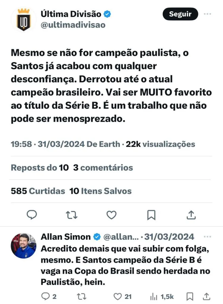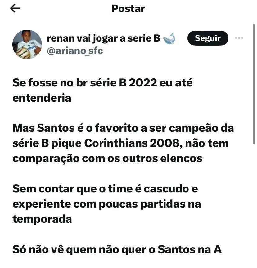 “Jogamos contra eles no Campeonato Paulista e a gente viu como dificultaram. Infelizmente a gente não vai ter a torcida nesta partida de novo, mas time que quer subir tem que passar por cima de tudo isso. Então, temos que seguir concentrados para que na segunda-feira a gente possa fazer um grande jogo e somar mais três pontos”, completou.