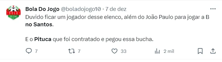 Vale destacar que a gestão buscou a chegada do craque nas janelas do início e do meio do ano, mas o clube japonês dificultou a situação. Pituca já havia externado o desejo de retornar a Vila, que não foi abalado mesmo com o rebaixamento para Série B do Campeonato Brasileiro.