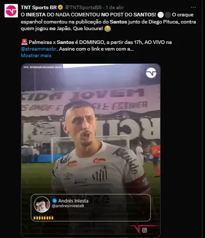 Porém, um outro assunto acabou de chamar atenção. O meio-campista Diego Pituca revelou em entrevista que tentou trazer o meia espanhol Iniesta para o Santos.