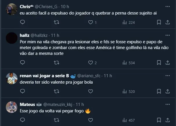 O lance foi tão inusitado que dividiu até os jogadores do próprio Coelho. Enquanto Juninho admitiu ter sido um erro do atacante, o volante Alê minimizou o lance e ainda citou que o Peixe teria levado um “chocolate”. Entretanto, a fala chegou até Diego Pituca e o capitão deu a seguinte resposta: