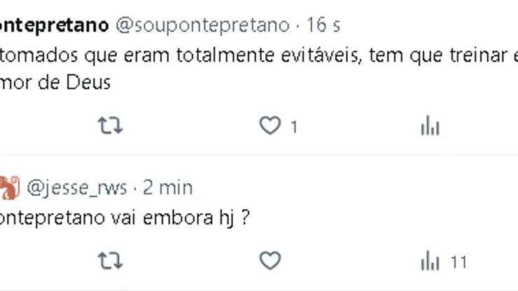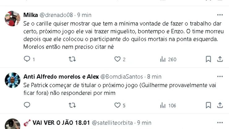 – Demos bobeira e tomamos dois gols. Quero saber por que a CBF faz palestra de arbitragem? Não é desmerecendo o Santos, que soube fazer o resultado. Mas a arbitragem nossa nunca tem critério. O critério sempre é para o time maior.