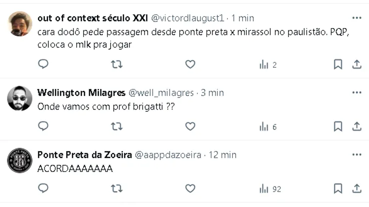 – Ponte Preta tem o mesmo técnico desde o Paulista. Coisas definidas dentro de campo tanto defensivamente quanto ofensivamente. Se eles estiverem com o bloco baixo, nós cobramos para que essa bola gire com mais velocidade.