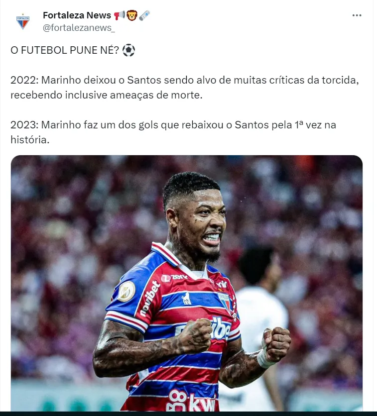 Os torcedores escreveram comentários como: “ingrato“, “cuspiu no prato que comeu”, “falta de consideração“, “antes do Santos era um meme”, na publicação de Marinho. Os santistas se irritaram com a forma que ele tratou a torcida da equipe, onde ele viveu os melhores anos da carreira, sendo eleito Rei da América em 2020.