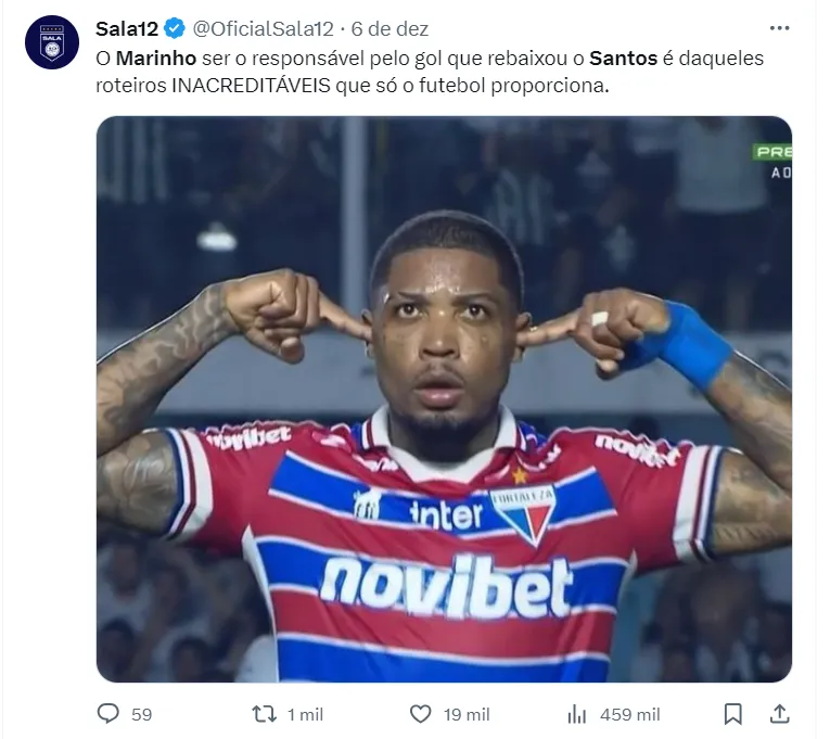 Diante de toda essa circunstância, a torcida do Santos vem demonstrando a frustração e tristeza de diversas formas diferentes. Recentemente o alvo dos santistas foi Marinho. Através das redes sociais, os torcedores questionaram a comemoração do jogador no gol que abriu o placar para o Leão do Pici na Vila Belmiro.