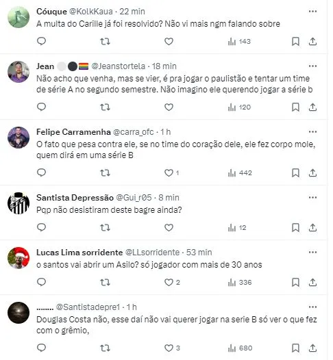 Trata-se de Douglas Costa, que em um primeiro momento, apresentou certa resistência na oferta inicial do Santos, mas, segundo o comunicador Alef Santos, as conversas sofreram uma reviravolta.