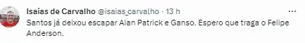 “Atualmente na Lazio, o meia Felipe Anderson quer voltar ao Santos em 2024. Com passagens também por Porto e West Ham, o jogador tem contrato com o time romano até junho de 2024”, publicou o jornalista Lucas Costa em suas redes sociais, seguindo as informações dos colegas.