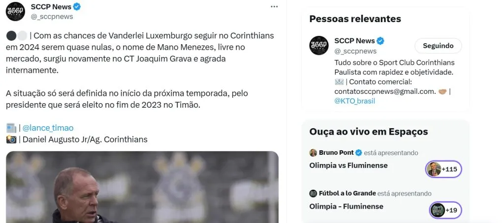 Após a saída de Odair Hellmann, o Santos chegou a oferecer uma proposta a Mano Menezes para assumir como técnico na Vila Belmiro. O Bolavip Brasil apurou que a oferta de Andres Rueda era alta: R$ 1 milhão mensais ao treinador, que havia acabado de ser demitido do comando do Internacional. O negócio não foi para frente.