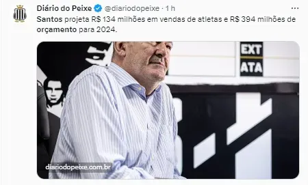 De acordo com informações publicadas pelo site Diário do Peixe, a direção do Alvinegro Praiano projeta um orçamento na casa dos R$ 394 milhões para 2024. Desse valor, com as vendas de jogadores, a equipe espera arrecadar R$ 132 milhões.