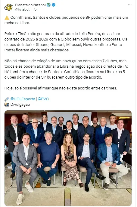 Porém, agora, o assunto da vez é sobre as Ligas. Na noite de ontem (23), o jornalista PVC, do Uol, informou que o Peixe estaria incomodado com a postura do Palmeiras na Libra e poderia deixar o grupo.