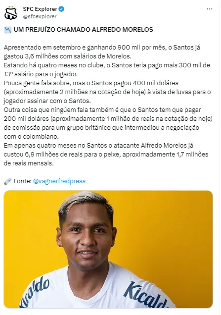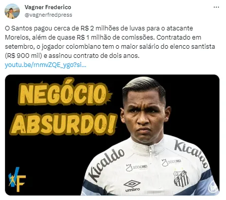 Segundo Ricardinho Martins, Morelos não teria sinalizado aceitar a redução salarial. Ele tem salário na casa dos R$ 900 mil por mês. Ele tem contrato com a equipe santista até a temporada de 2025, ou seja, ainda teria muito dinheiro a receber do time.