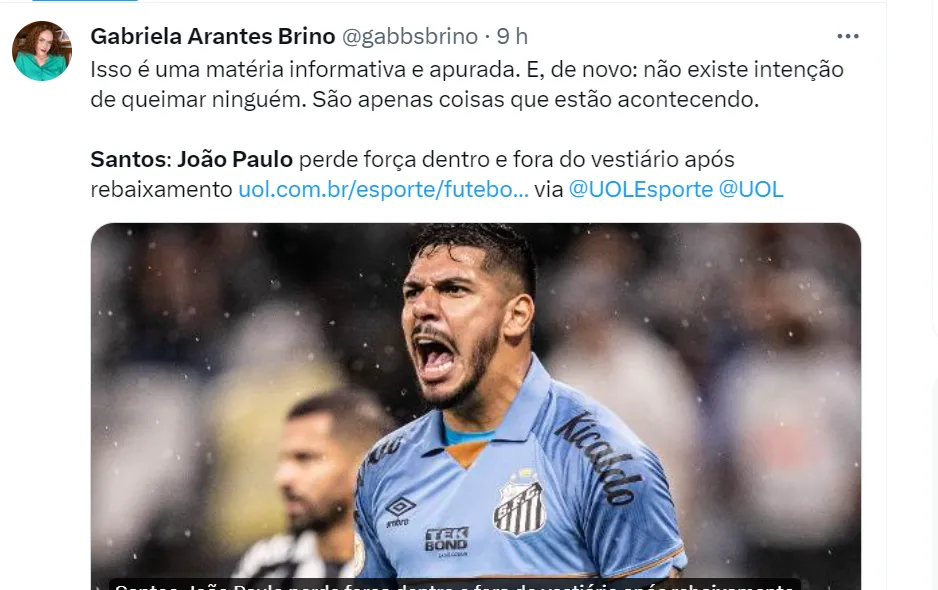Tudo começou no ano passado em meio à ameaça de rebaixamento para a Série B. No jogo final contra o Fortaleza, João Paulo se recusou a entrar em campo com a faixa de capitão, o que pegou mal na alta cúpula da Vila Belmiro.