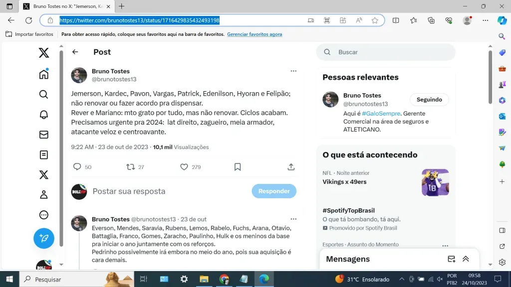 E sobre reforços? É muito cedo para dizer, especialmente com risco de rebaixamento, o que diminuiria consideravelmente as receitas. Um nome apalavrado com Gallo – até por o dirigente conhecer o atleta de outros ‘Carnavais’ – é Hyoran, meia em fim de contrato no Atlético-MG. O jogador de 30 anos já pode assinar um pré-acordo de graça neste momento.