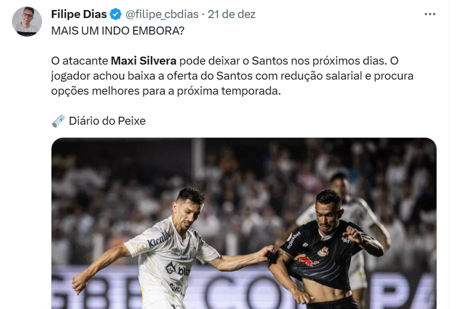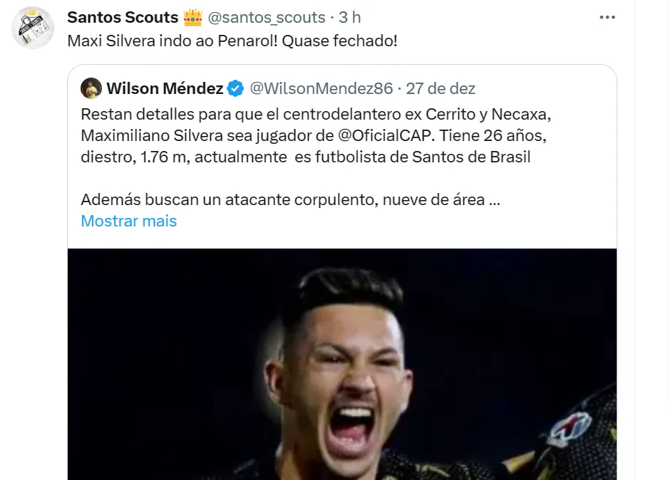 “Restam detalhes para que Maxi Silvera seja jogador do Peñarol”, escreveu o jornalista em sua conta no X. O clube uruguaio contava até a semana passada com Carlos Sánchez, que teve ótima passagem pela Vila Belmiro.