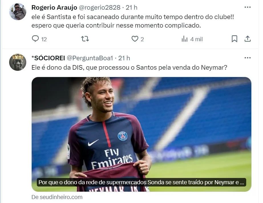 Delcir já teve negociações pendentes com o Santos no passado. O bilionário teve participação direta na transferência de Neymar ao Barcelona, em 2013, quando o profissional ainda estava vinculado ao Peixe.