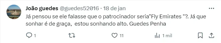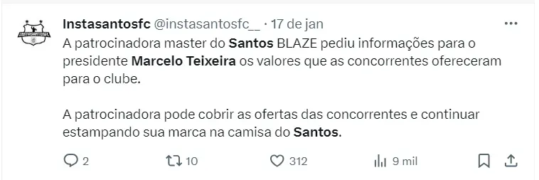 Isso porque, a equipe paulista recebeu uma oferta beirando R$ 50 milhões por ano para ser o patrocinador máster da equipe. Com isso, John Textor, mandatário do Botafogo, ficou incrédulo já que a equipe vai receber quase o dobro da equipe carioca que está na Libertadores.