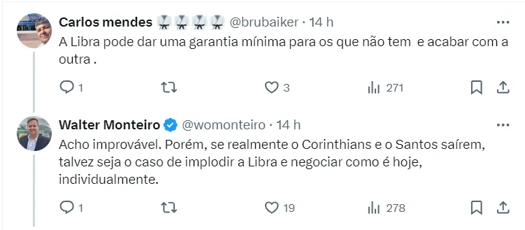 Diante da incerteza do Alvinegro Praiano e do Corinthians, a situação pode mudar drasticamente para os clubes da Libra. Já que se deixarem o grupo, uma nova negociação precisará ser iniciada com uma queda drástica dos valores.