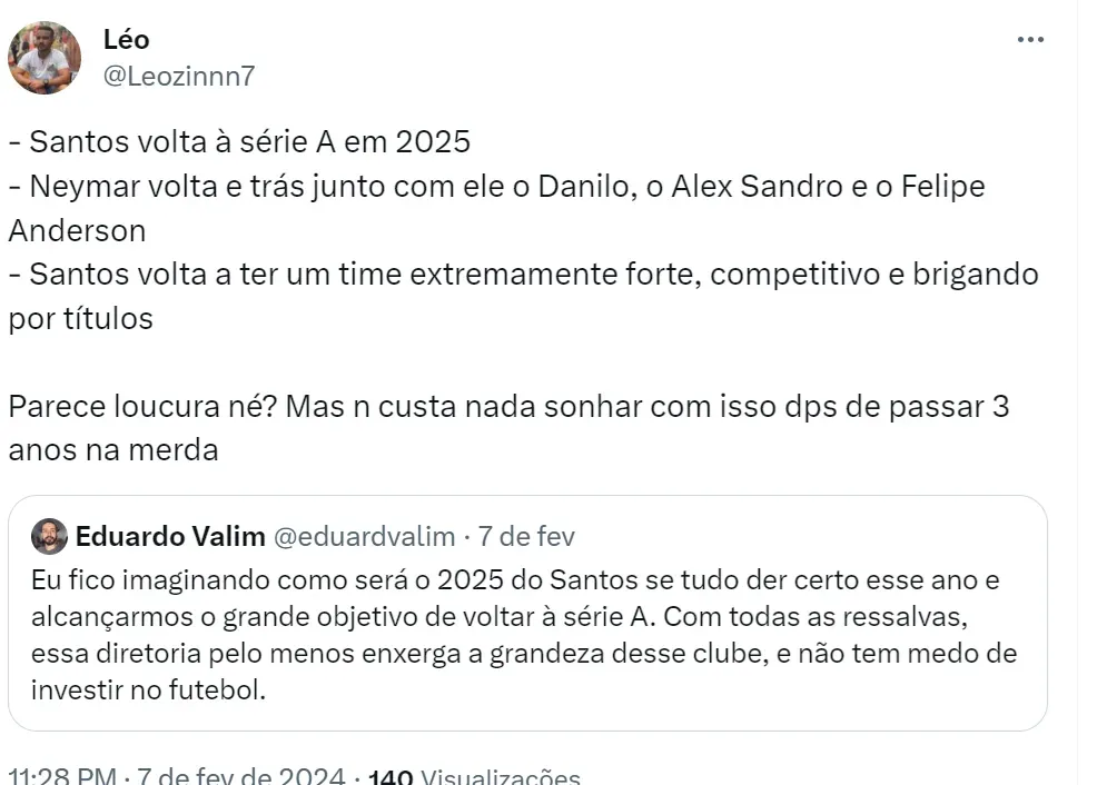 O Bolavip Brasil apurou com fontes ligadas à nova gestão do Peixe, presidido por Marcelo Teixeira, e não houve mais procura ao staff de Alex Sandro. No ano passado, Rueda chegou a oferecer R$ 700 mil por mês de salários ao Menino da Vila.