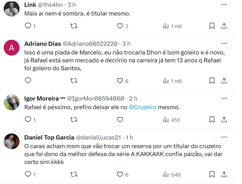A chamada ‘cereja do bolo’ deve ser o retorno de Rafael Cabral, goleiro atual do Cruzeiro. O jogador de 33 anos recebeu contato do time do presidente Marcelo Teixeira para voltar à Vila, onde foi tricampeão da Libertadores, em 2011.
