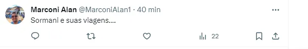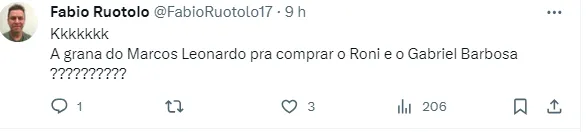 Sormani ainda disse que traria Gabigol também e que a venda de Marcos Leonardo poderia custear a dupla: “Assim como os flamenguistas não gostam do Gabigol. Compraria os dois. E o ataque seria: Rony, Gabriel e Soteldo. Usaria a grana do Marcos Leonardo para isso”.