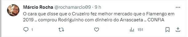 “Rony tem contrato com o Palmeiras até dezembro de 2026. Se eu fosse presidente do Santos compraria ele. Os palmeirenses não gostam do Rony”, disse o profissional em seu Twitter, deixando muitos incrédulos.