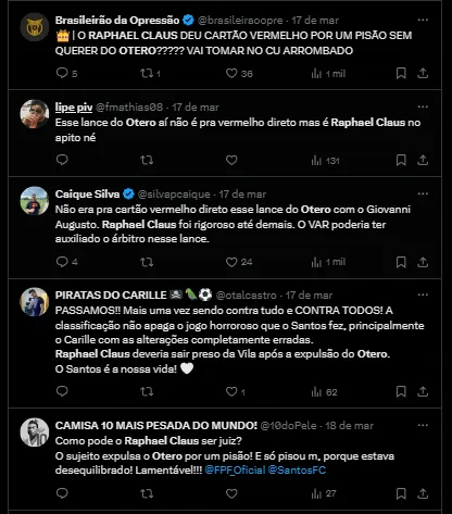 Nos bastidores, tanto os árbitros que estavam na cabine de vídeo do VAR, quanto a Federação Paulista de Futebol entenderam que a decisão de Claus foi correta e que ele acertou em aplicar o cartão vermelho.