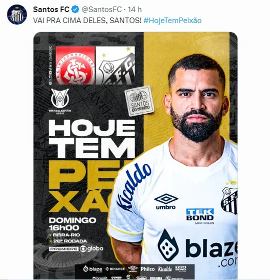 O Santos está em Porto Alegre para enfrentar a equipe do Internacional pela 28ª rodada do Campeonato Brasileiro, no estádio Beira-Rio, às 16h. O Peixe amarga a 18ª posição na competição, e precisa vencer para deixar a zona do rebaixamento, mas o técnico Marcelo Fernandes por conta de situações disciplinares dentro de campo, não poderá montar o time que julga ideal.
