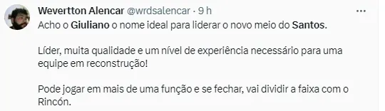 Porém, em contrapartida, um jogador se aproximou. Trata-se do meio-campista Giuliano, que não renovou com o Corinthians, e acabou deixando a equipe, após sua terceira temporada pelo Alvinegro Paulista.