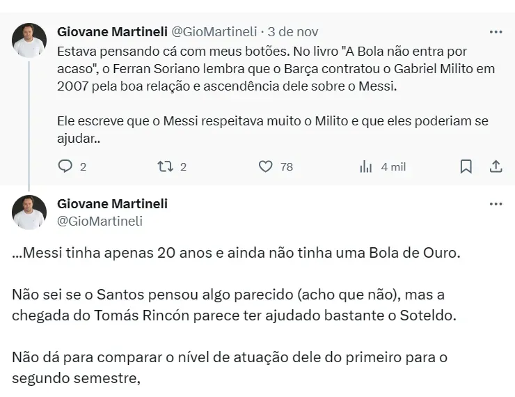 Alguns torcedores apontam semelhança entre Lionel Messi e Gabriel Milito, nos tempos de Barcelona. O então jovem Messi contava com a liderança de Milito para se concentrar em apenas jogar futebol.